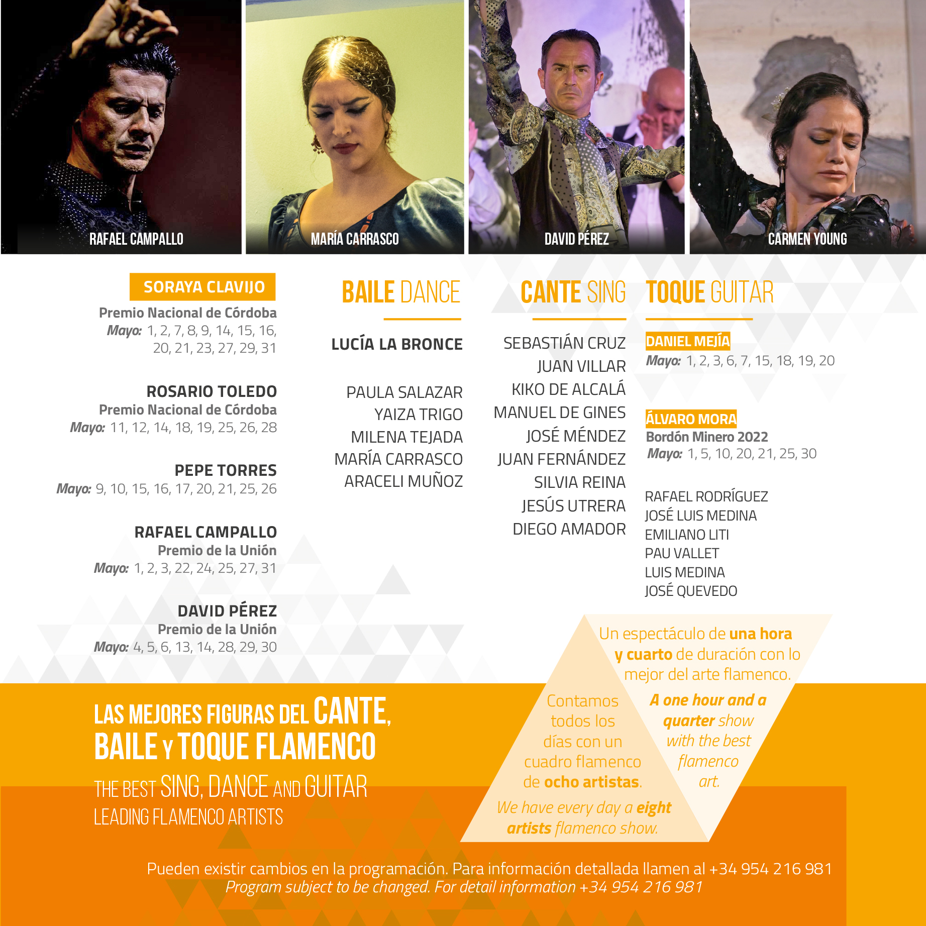 Un cuadro completo con los mejores artistas flamencos llenos de energía y emoción.